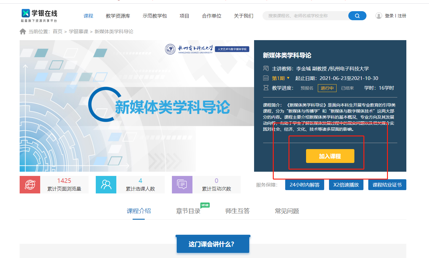 登录成功后进入自己选读课程界面点击加入课程,加入成功后课程添加至自己个人空间,点击个人头像处即可进入个人空间。