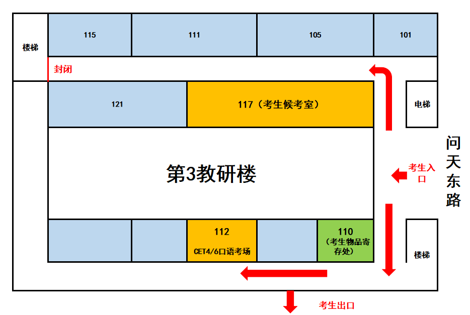 1、考生请携带准考证、身份证(或学生证),根据准考证上的报到时间(非考试时间),到达候考室进行签到:例如考试时间为8:30,则须在8:00到达候考室(3教117),之后由工作人员统一带至考试教室。请勿未经候考直接进入考试教室!