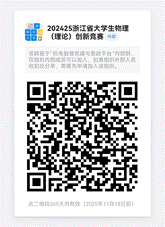 在准备竞赛考试过程中,有疑问的同学可到物理理论竞赛钉钉群(加群请注明年级-专业-姓名)咨询,相关信息也将在该群发布(后续25年省物理创新竞赛(省级A类)信息也将在此群发布),也可咨询相应的辅导老师。理论竞赛辅导视频见钉钉群。欢迎喜爱物理的同学们参加,预祝同学们取得好成绩!