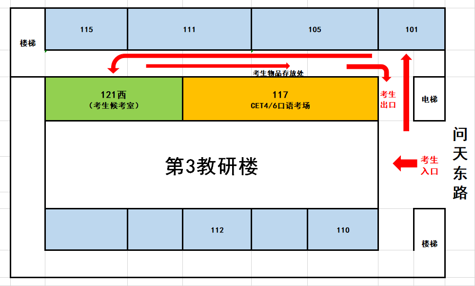 考试教室:第3教研楼117(在第3教研楼121西候考)