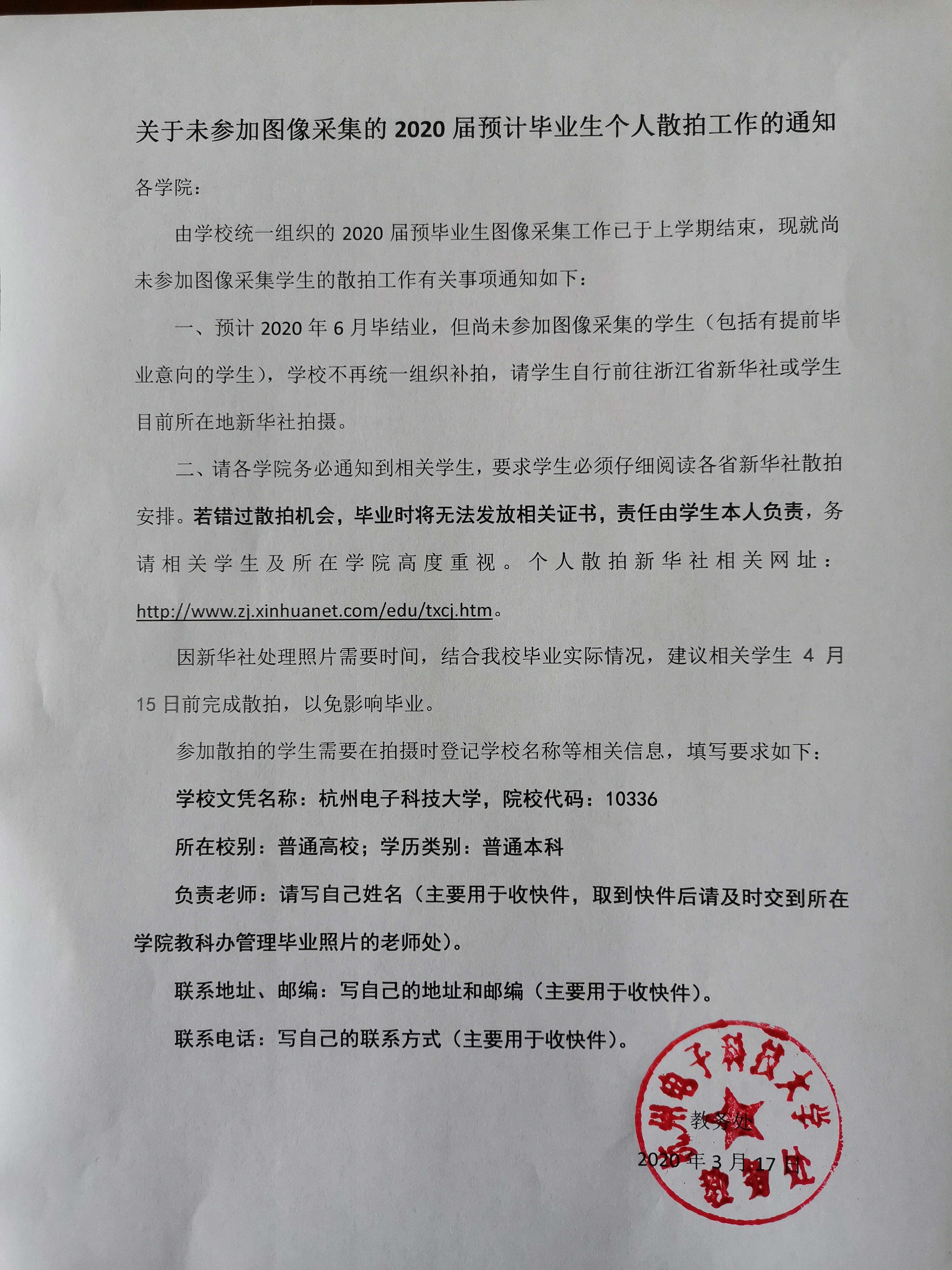 关于未参加图像采集的2020届预计毕业生个人散拍工作的通知