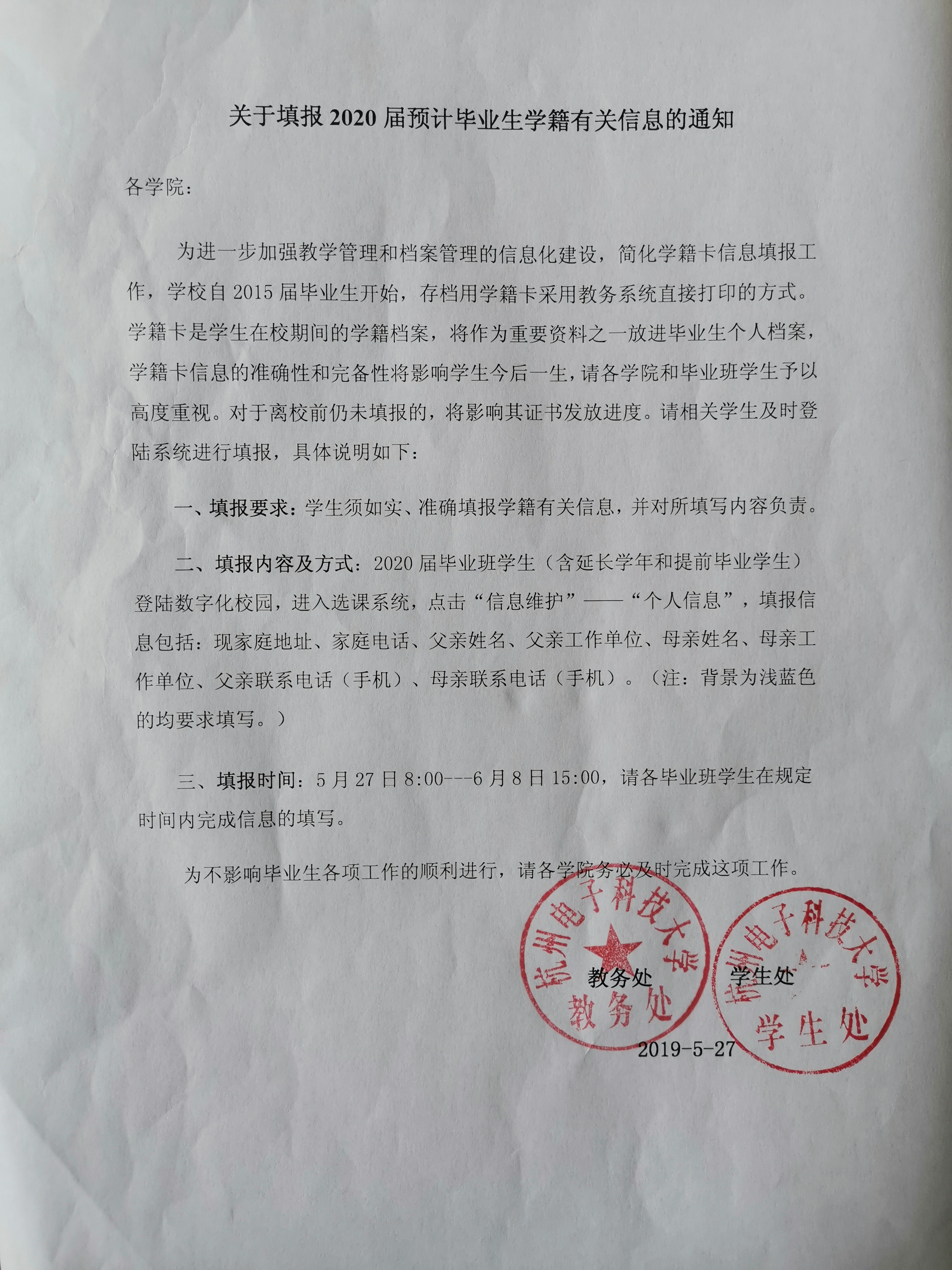 关于做好2020届毕业生毕业相关工作的通知(杭电教通〔2020〕8号)